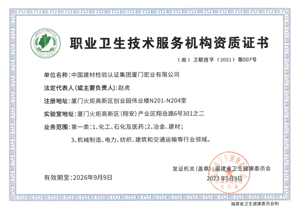職業(yè)衛(wèi)生技術(shù)服務(wù)機構(gòu)資質(zhì)證書